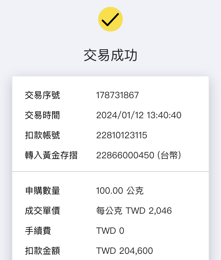 回覆 雄大:1/9日下單金飾,沒有下黃金存摺,請人拜...