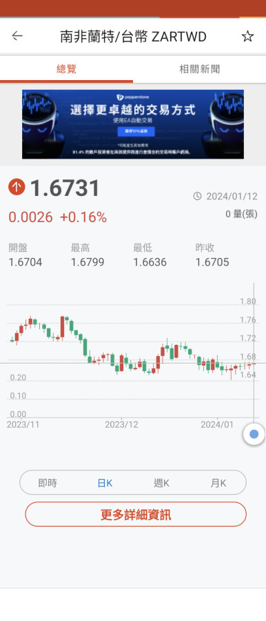 我的南非幣利息高5.55%活期有漲價的空間😁,南非幣1.65進場.