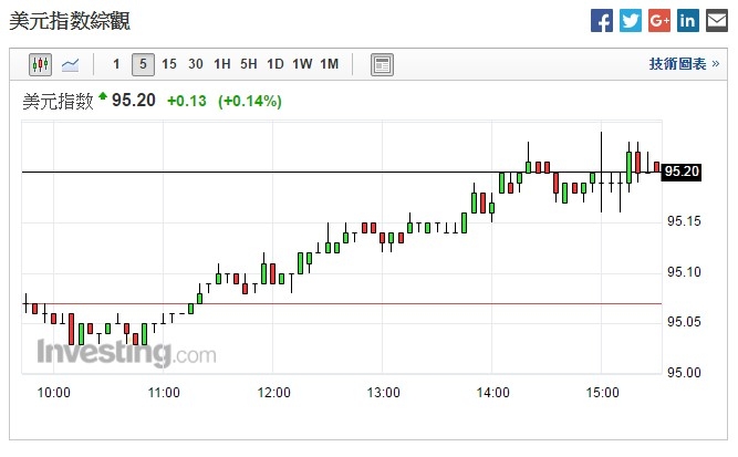 回覆 不專業人士:短期看到(5分鐘),美元指數還在慢慢上漲...