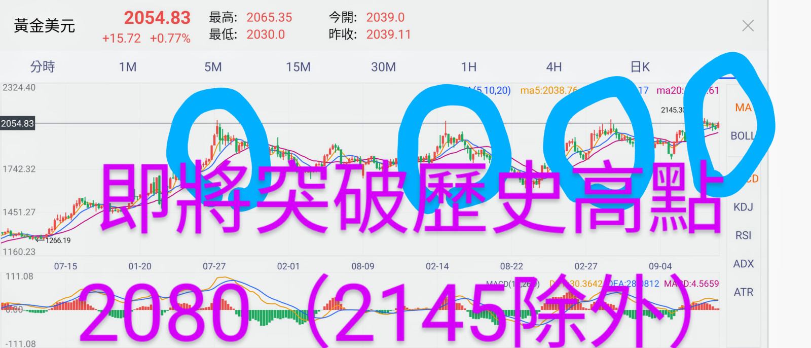 ⭐112/2/1因大非農公佈高於預期,連續兩天跌100元美金,今日已經不往以前了,不要求漲100元美金,只要求突破2080以上📈🚀↗️😊.
