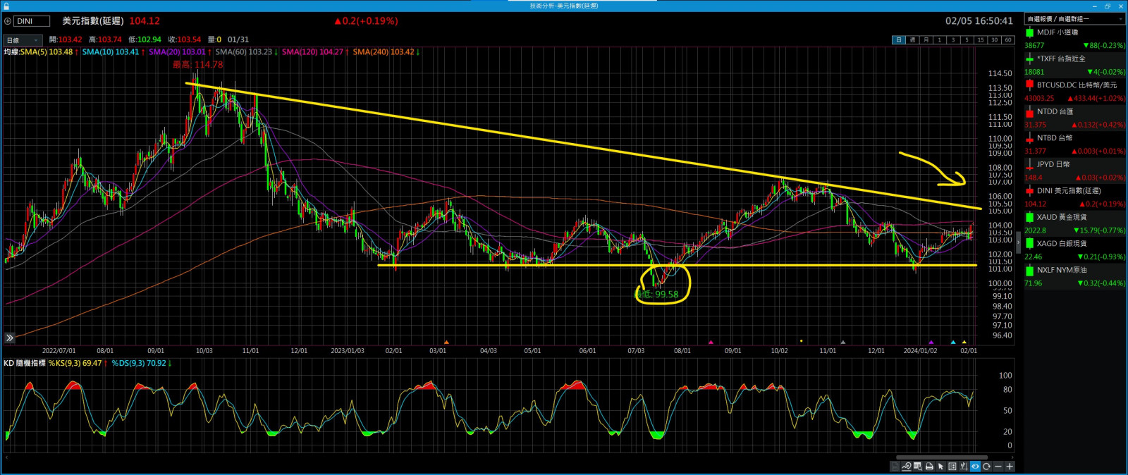 114.78回檔至99.58做出破線翻,持續做三角收斂...