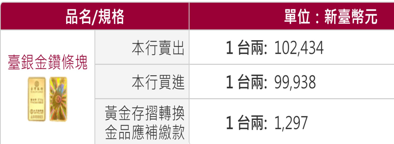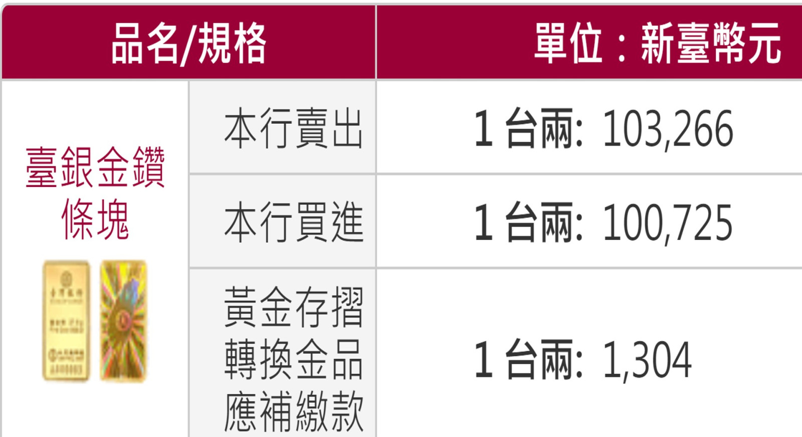 黃金存摺 3261台幣/公克(今日暫高3262台幣)