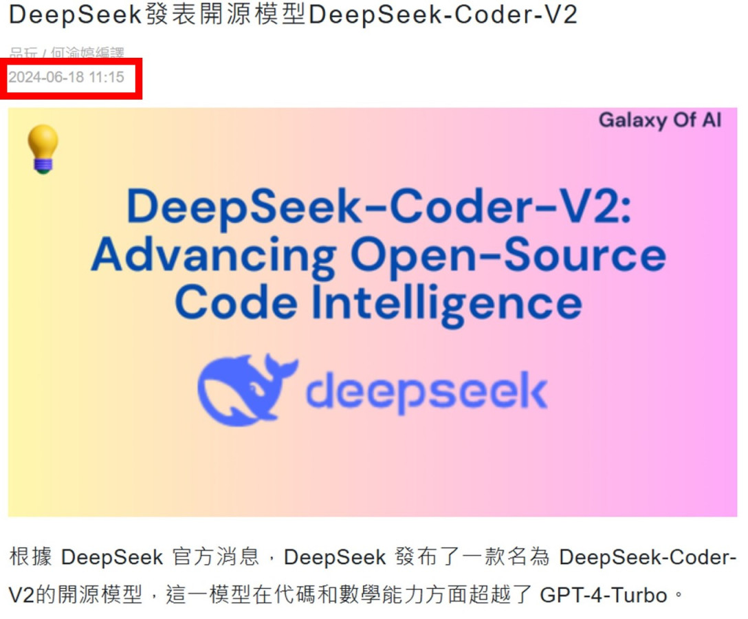 1.DeepSeek 在2024年6月中就發表,但媒體禁聲這件事,