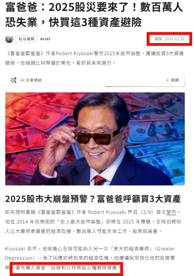 2025.02.10 建議民眾優先購入黃金、白銀、比特幣。