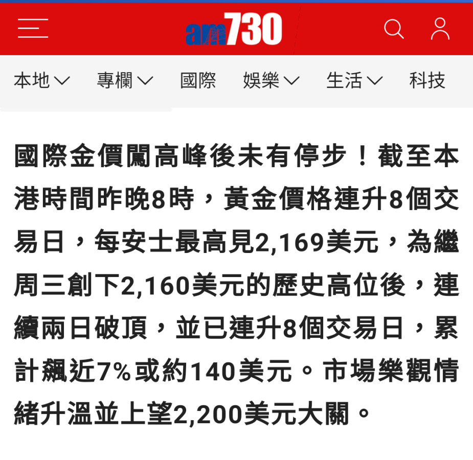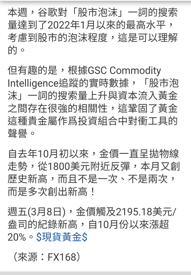 回覆 alisonli5168:妳的金價網站系統跑比台灣快。我等不及時,...