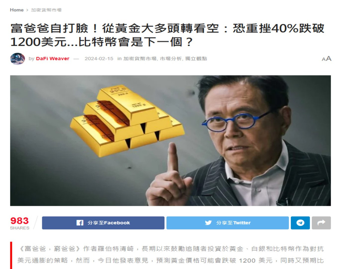 黃金漲太快,他手上部位不足,沒跟上補貨