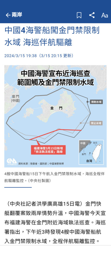中國海警巡查金門,不知道哪天巡查台灣😳