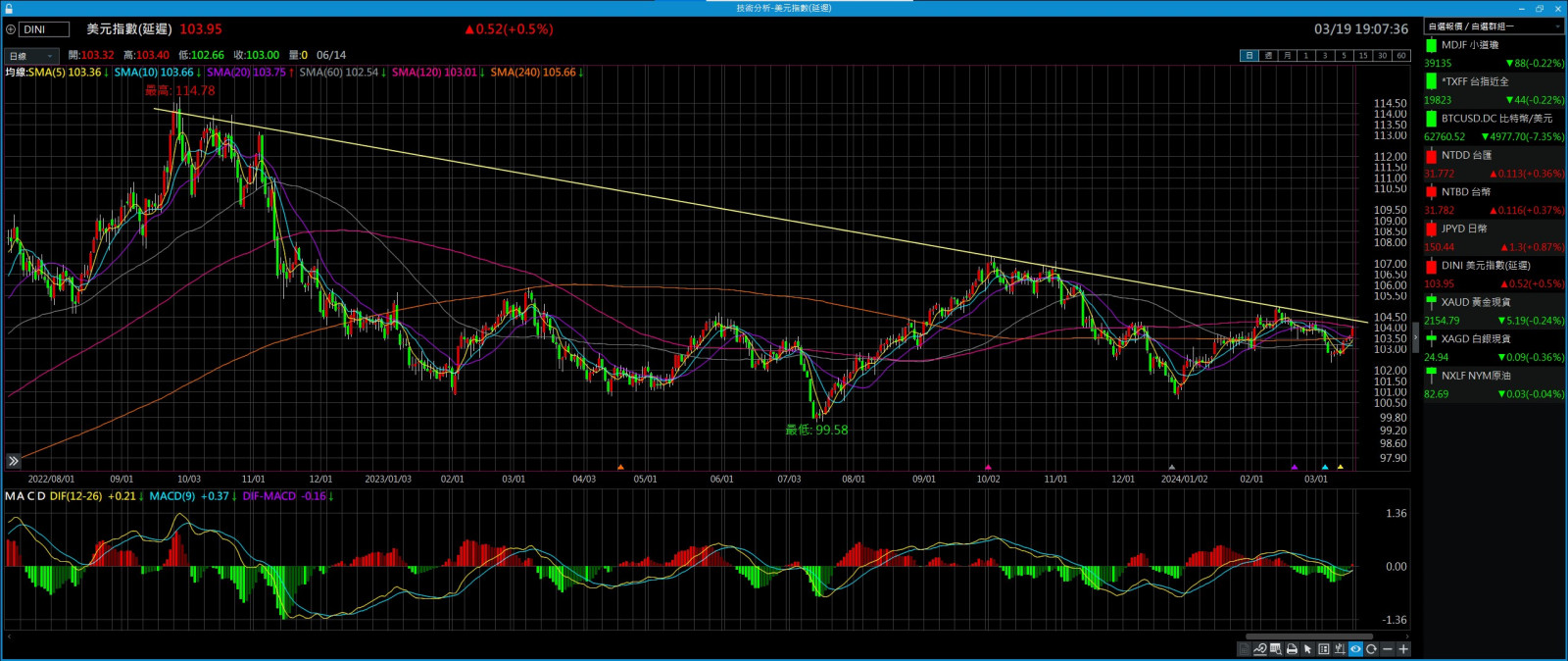美元指數今天突破了下降趨勢線....