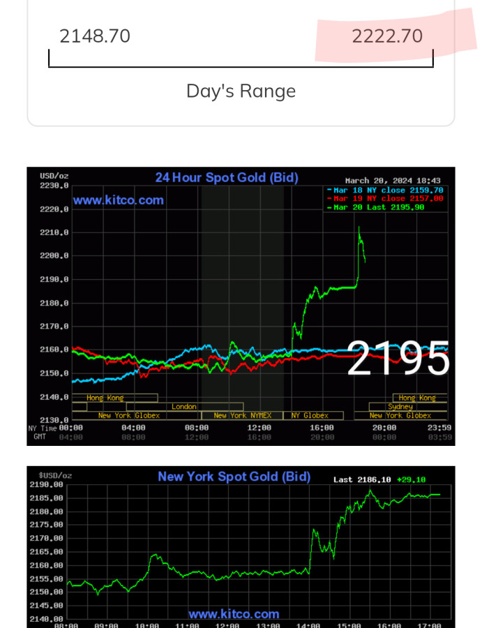 過年前2048一錢7721賣掉幾條一百公克澆鑄金條,想說漲不上去一定會回檔,要趁機會換成小單位壓鑄金條,結果過年後高興沒幾天,眼睜睜的看祂一直突破重圍,三月八日星期五只好認錯在2158買回再加碼,還好知錯能改😅