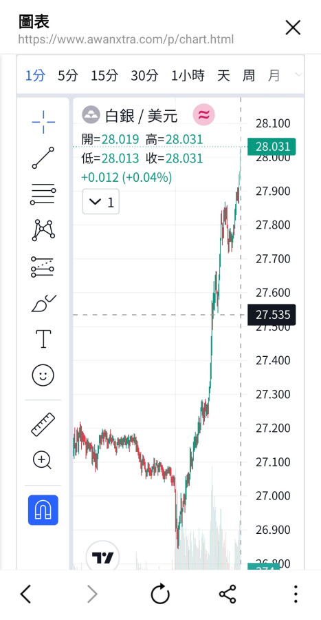 回覆 chgore:白銀在今晚八點半左右又開始爆衝了,黃金和...