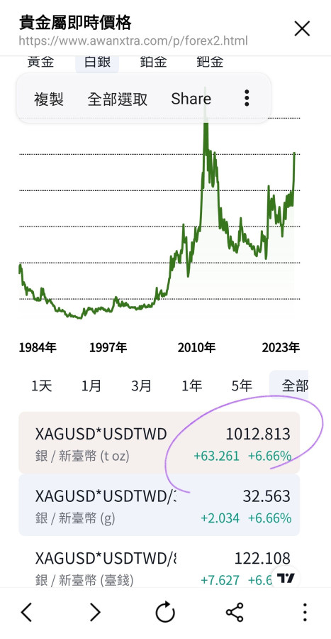 回覆 chgore:白銀的貨幣屬性雖不如黃金,但除了也算保值...