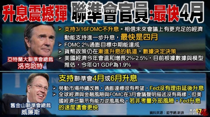 他們是沒有投票權沒錯!但他們跟葉倫是什麼關係你可知道?!當然有些人相信4月升息還太早但別忘了美國是掌握整個貨幣政策的主導權3月不升息已經 = 將主導權讓給日本、大陸美國失業人口已到達比例...(升息即有可能)完全不考慮美元升息的 "可能性" 不太妥P.S 別把大便掛在嘴邊,屎不該從那邊出來的 ^^