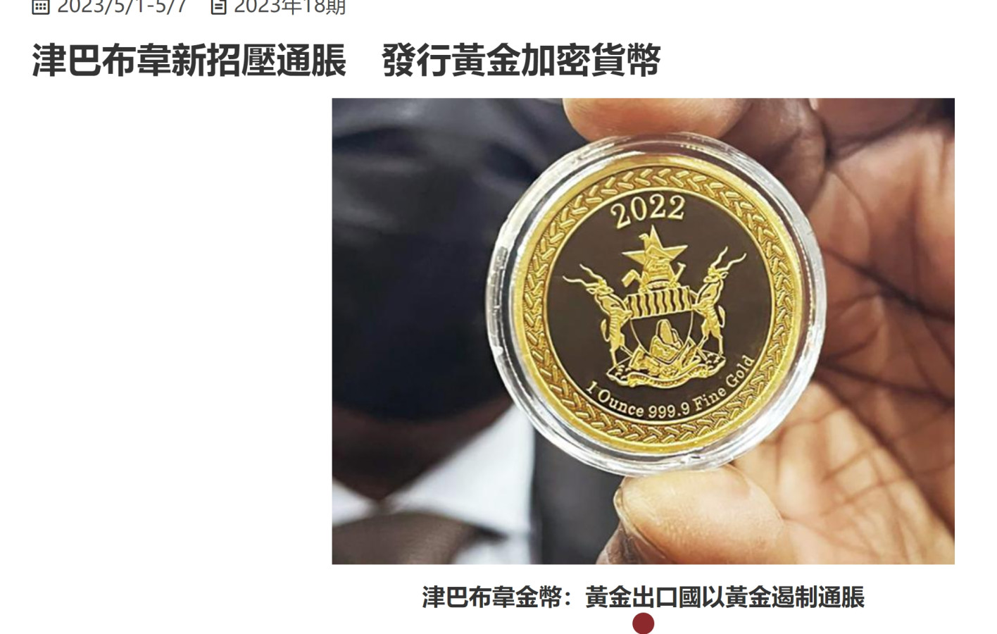 津巴布韋央行周五表示,陷入困境的本幣將被以黃金、其他貴金屬和外幣支持的新貨幣取代。該貨幣將以「重新調整」的利率從原先的130%調整為20%。銀行將從4月5日起兌換新貨幣。