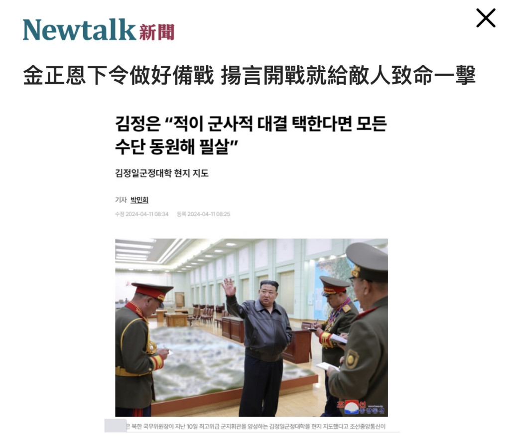 原文網址: 金正恩下令做好備戰 揚言開戰就給敵人致命一擊 | 國際 | Newtalk新聞 https://newtalk.tw/news/view/2024-04-11/915573
