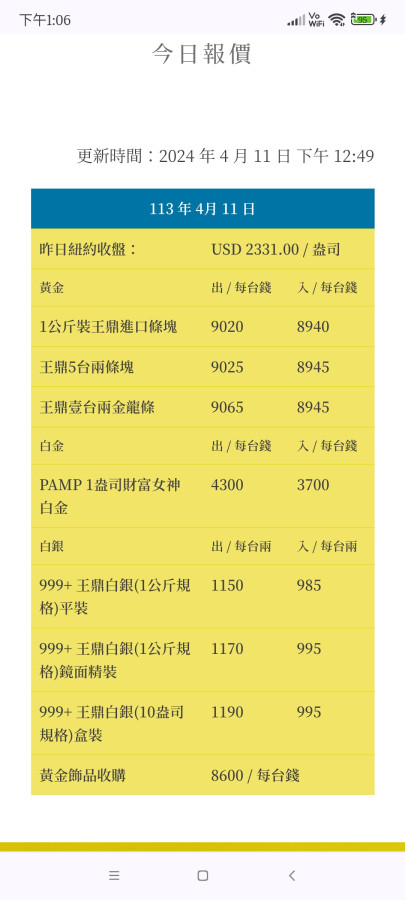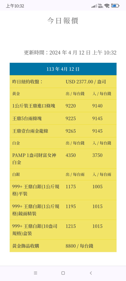 回覆 yesk:王鼎營業了,一錢比昨天漲200元。...