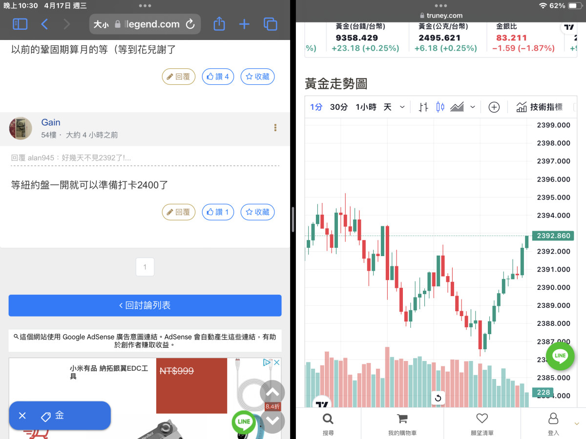回覆 Gain:等紐約盤一開就可以準備打卡2400了...