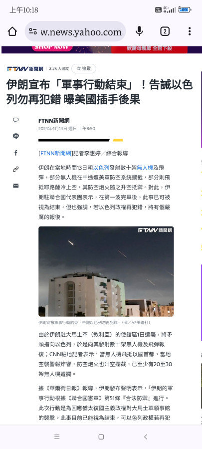 回覆 yesk:伊朗說可以了,不打了。球丟給以色列。恐怕...