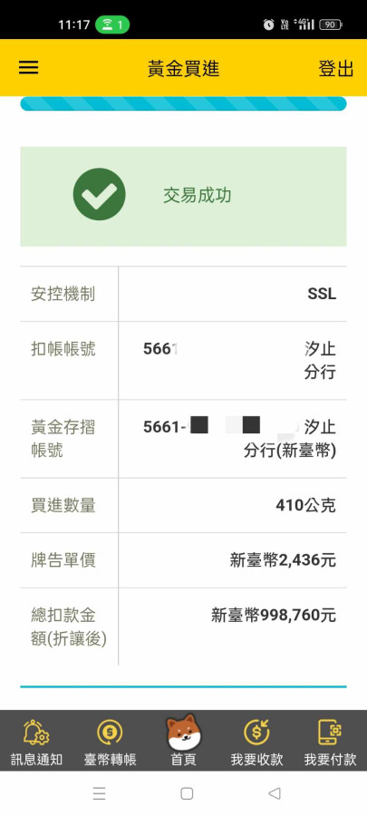 回覆 alisonli5168:展寬、三井貴金屬上週六一錢跌200,今天...