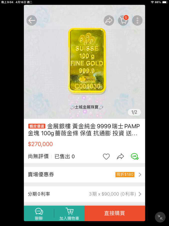 回覆 星哥:蝦皮買金+1, 還是要貨比三家,留意促銷...
