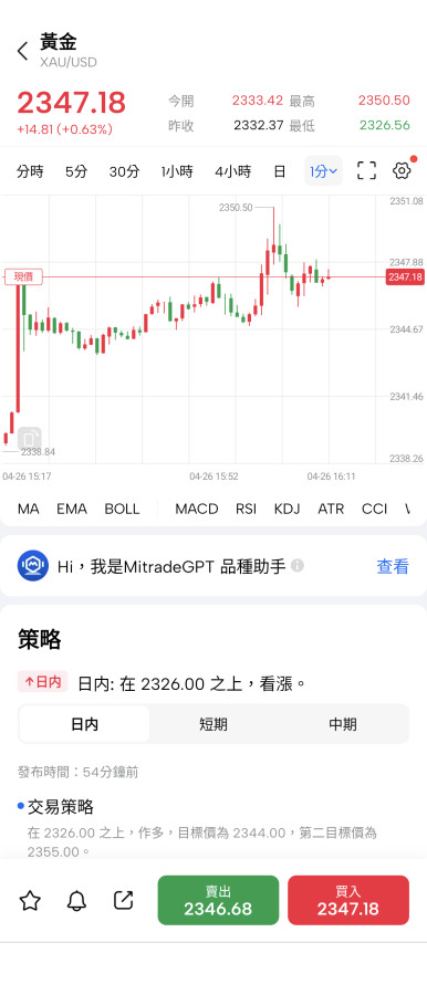 回覆 Gain:差不多了,操作結束了,金價準備回升了。...