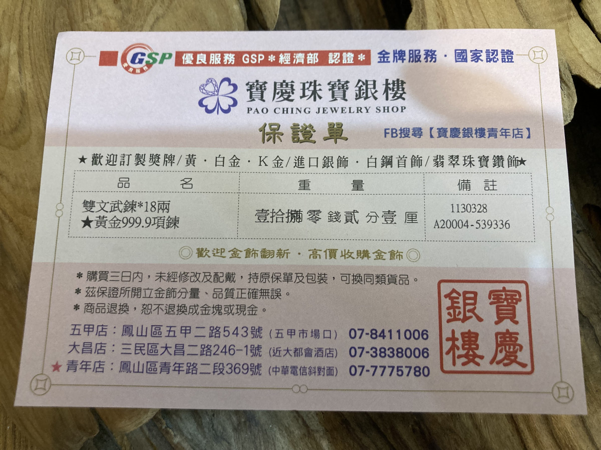 回覆 昀:真的。我爸50年前買了一兩金項鍊。那時2...