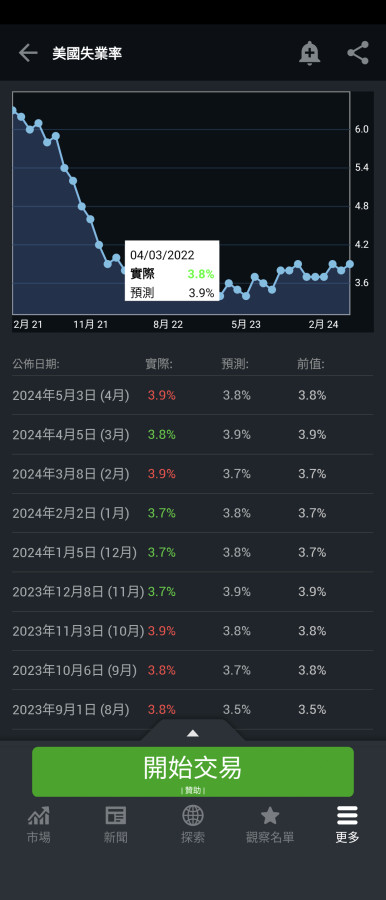 2022年2月24日烏俄戰爭之前還有超過6趴,自從有了戰爭美國失業率就偏低了,可能製造武器的工作特別多吧(我個人亂猜的).