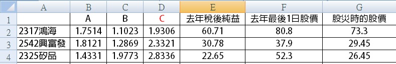 我找到了:去年稅後純益=鴻海是215Q3是3.65