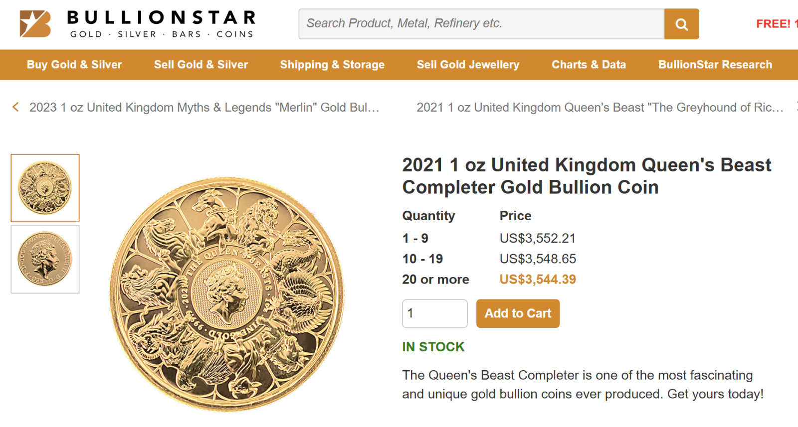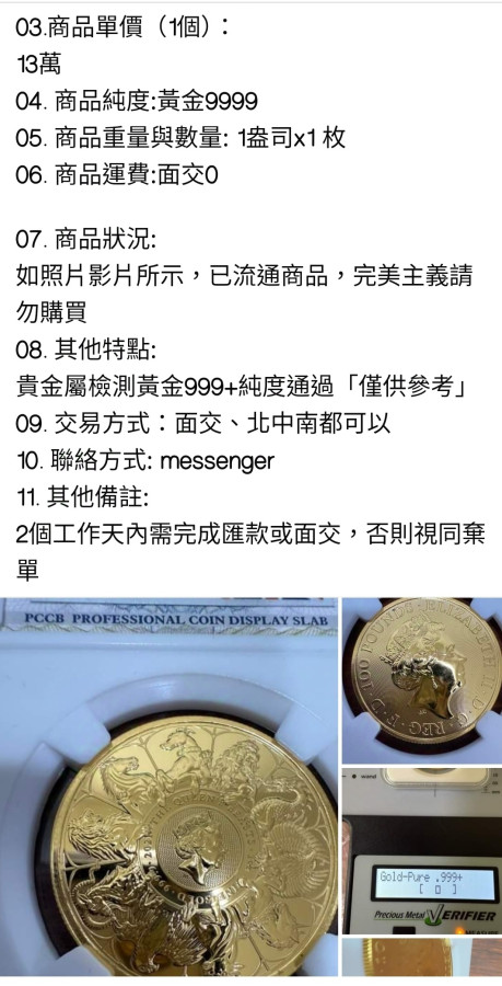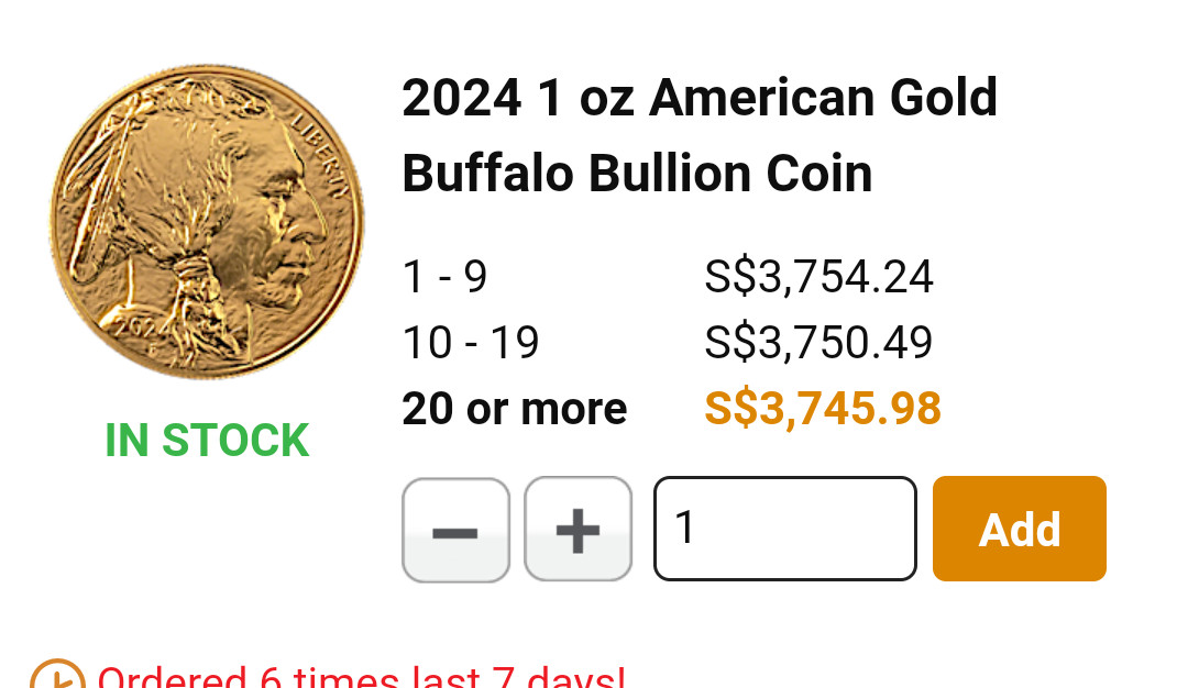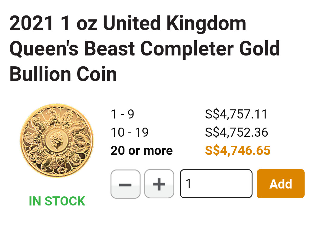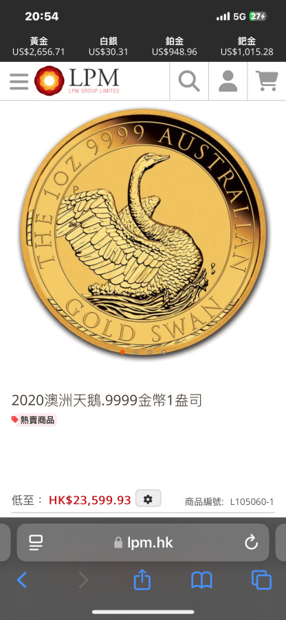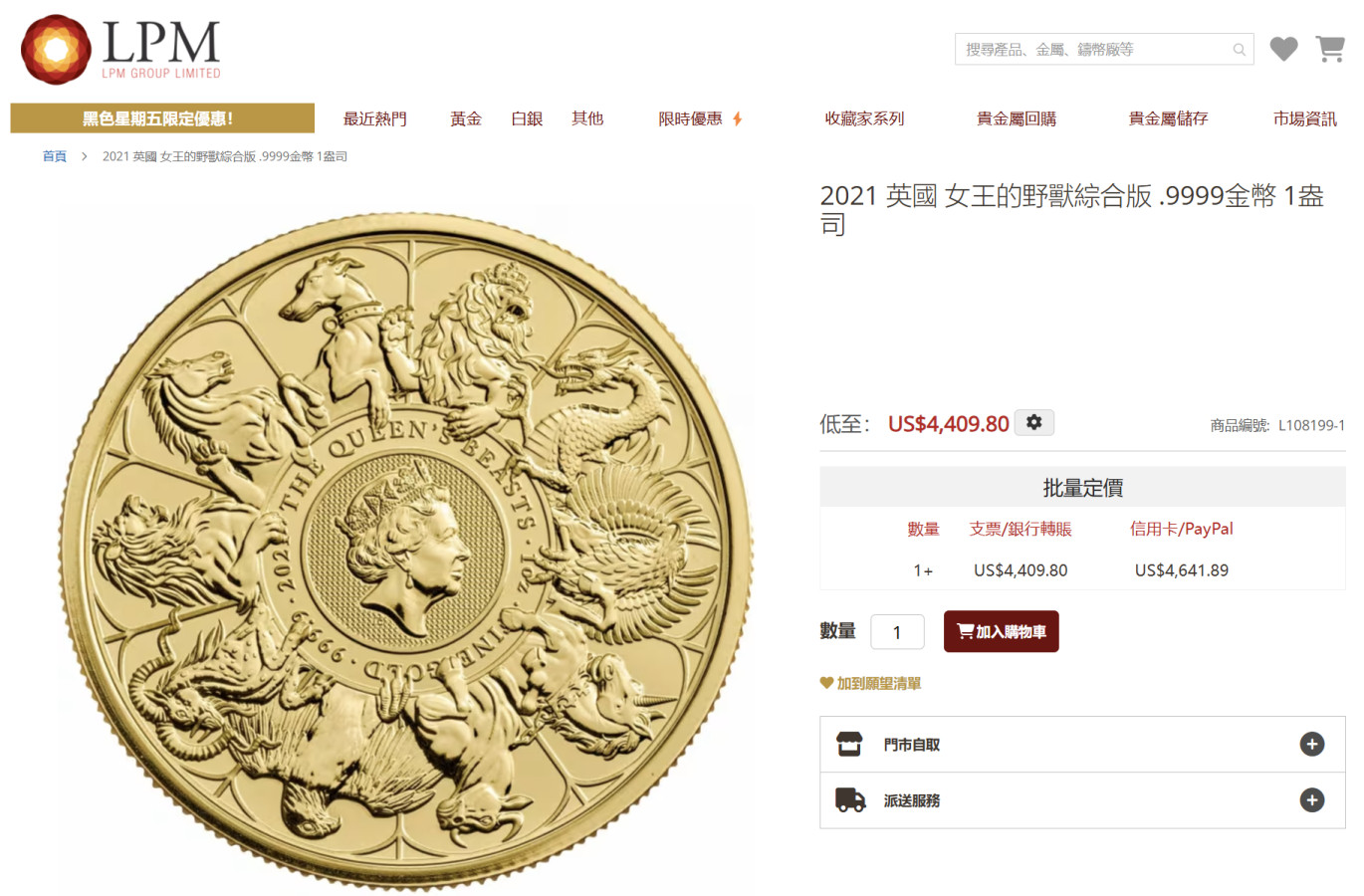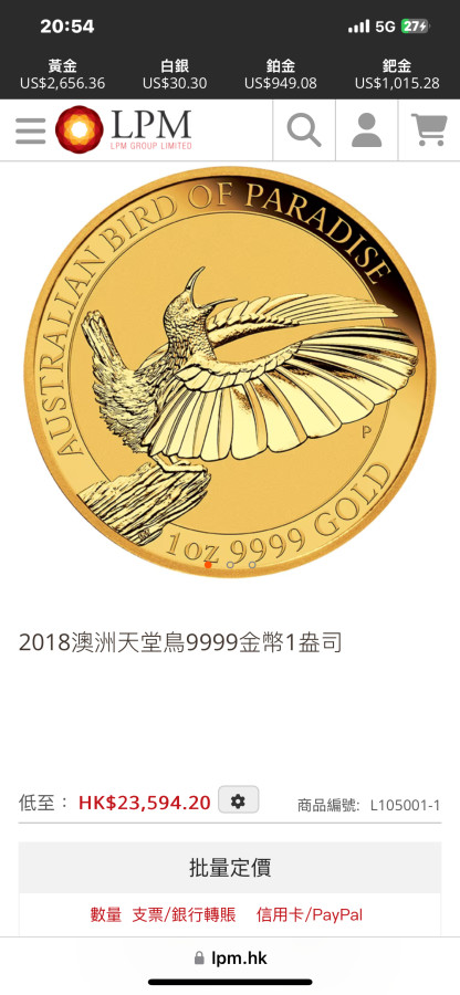 這家的價格會根據即時金價更改,幾個月前在銀樓一顆不到八萬台幣買的,這種收藏的金幣大概美國價格比較好。雖然網站缺貨,價格還是會跳動,現在網站標價大概9萬兩千多
