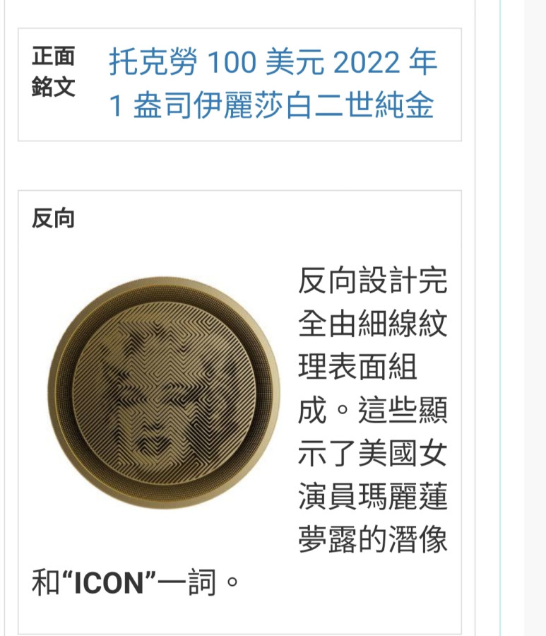 回覆 葉芬:謝謝分享 Y大瑪麗蓮夢露金幣 真漂亮上次...