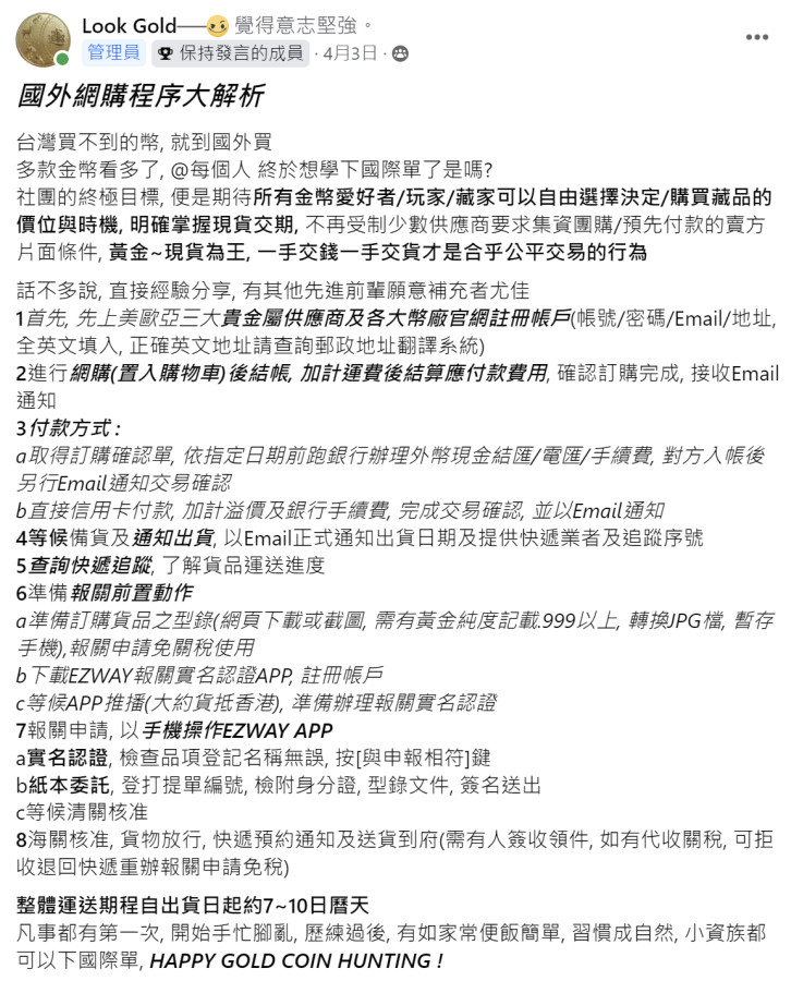 因為這店家是線上商店,他們有賣許多國際上知名鑄造廠生產的金條金幣等,