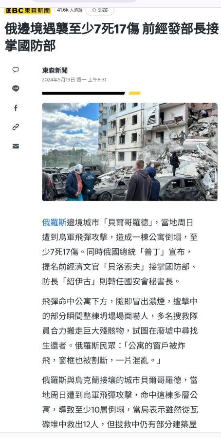 回覆 yesk:烏克蘭開始用飛彈直接打俄羅斯國土了,一棟...