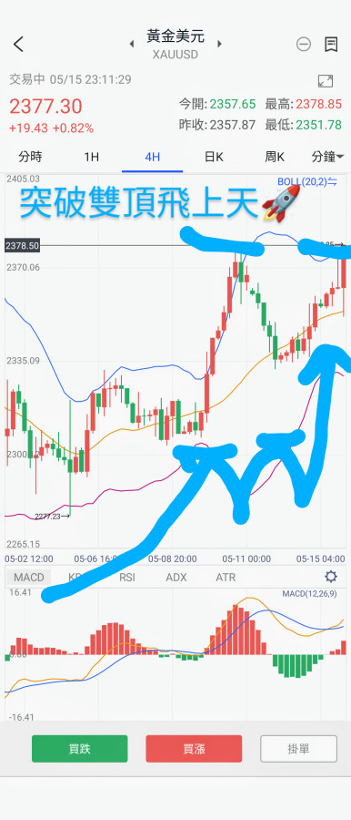 回覆 雄大:今晚突破雙頂2378準備衝上天了......