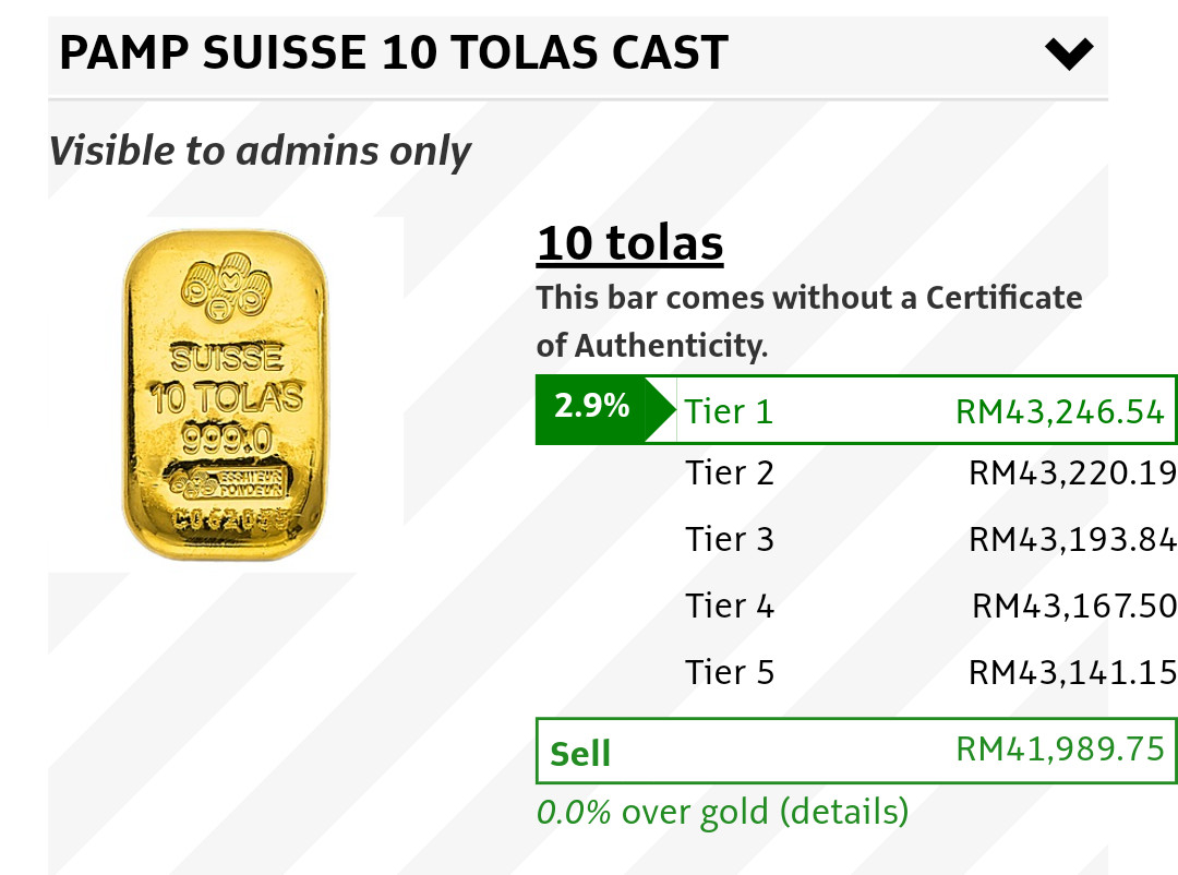 你該是買賣多年了,應知實金即便是金條或金幣,還是在計算完每單位單價後再加上工資或溢價上去。決不若紙金,報價每公克多少錢,買10克就是直接乘以10,買50克就是直接乘以50,無另外加計其它費用。