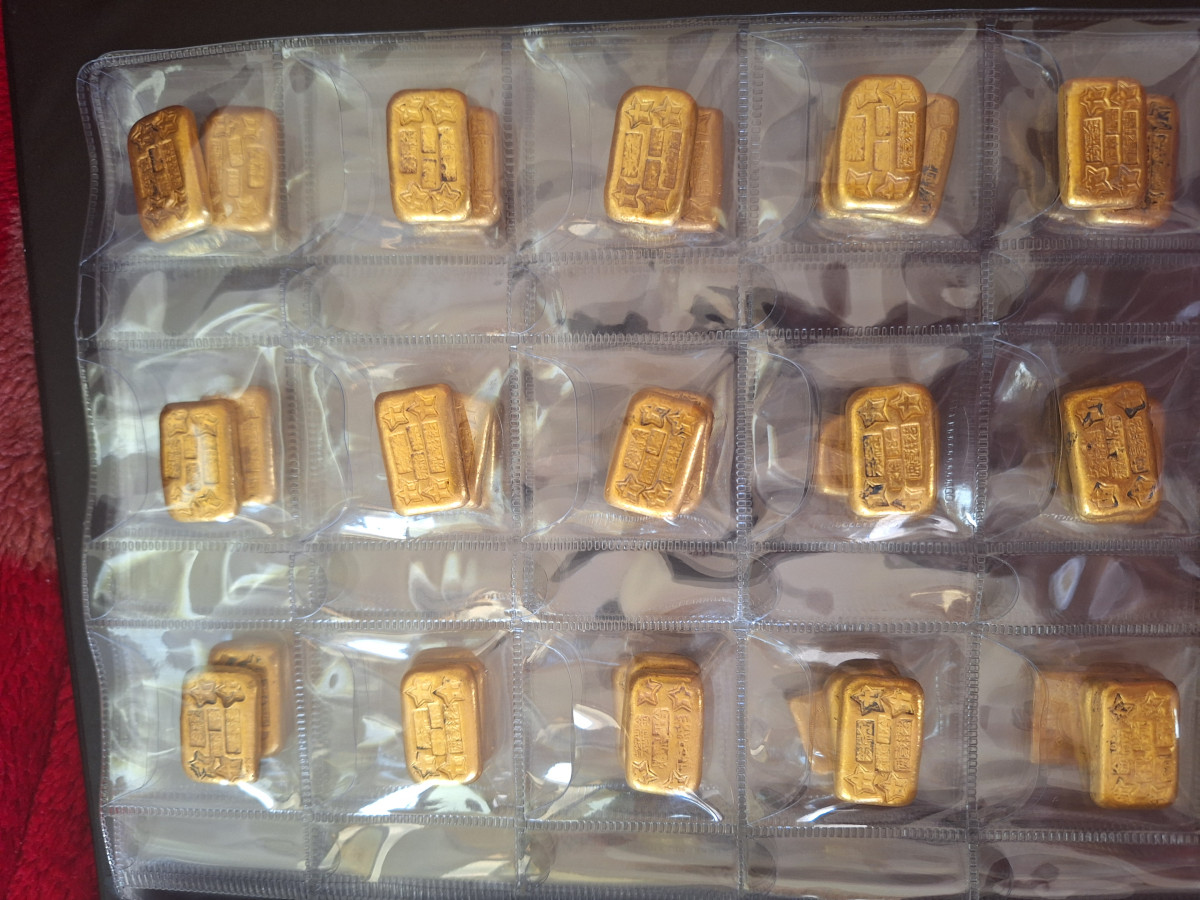 以前有去當地銀樓鑑定,確定是真黃金,上面的黑黑的是因為我爺當初是埋在樓梯下面,往生之前交待後輩去挖出來,挖出來之後隨便清水洗一洗而已,然後用一個玻璃罐子裝著,傳到我手裡我才用收集銀元的收納本裝著