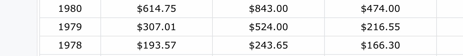 如果你1978年最低價166買入,1980年最高價843賣出,這二年多,足足可賺500 %以上😅