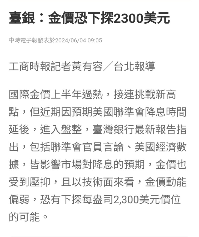 回覆 波波:其實這件新聞一出我大概就懂了黃金必往上衝...