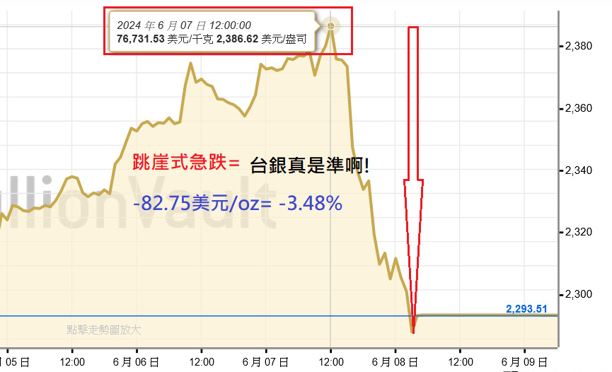 台銀真準=還真的是先知先覺= -82.75美元/oz= -3.48%