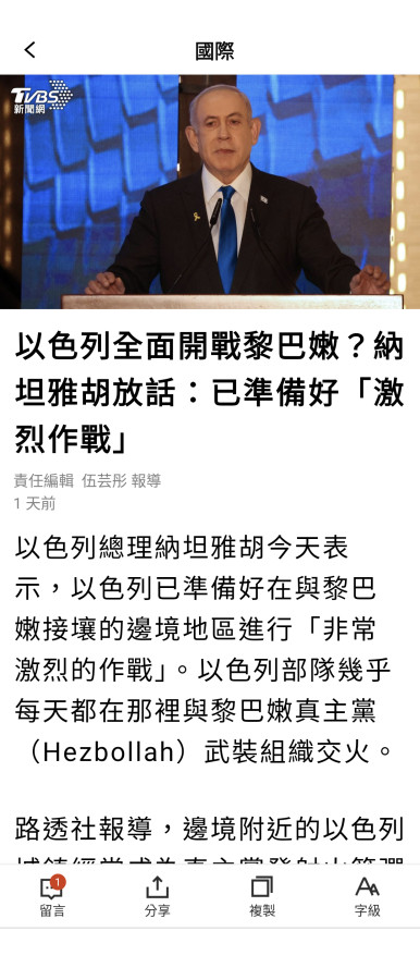 回覆 雄大:以色列全面開戰黎巴嫩?納坦雅胡放話:已準...