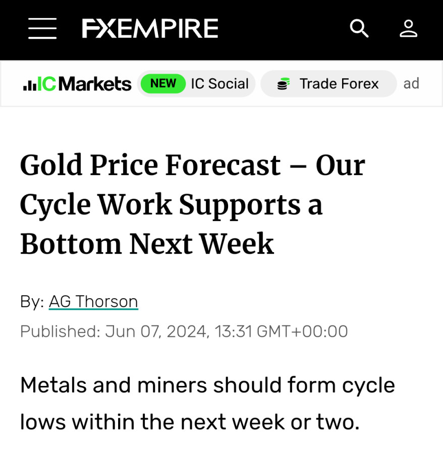 Metals and miners are dropping into June intermediate lows, and our work supports a bottom next week.