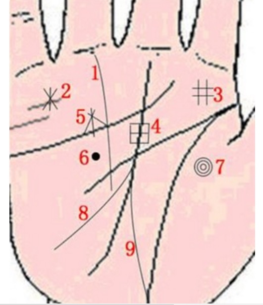 在事業線、生命線附近出現田字紋、口字紋等之類,田字紋說明命主比較適宜從事諸如房產、土地、土