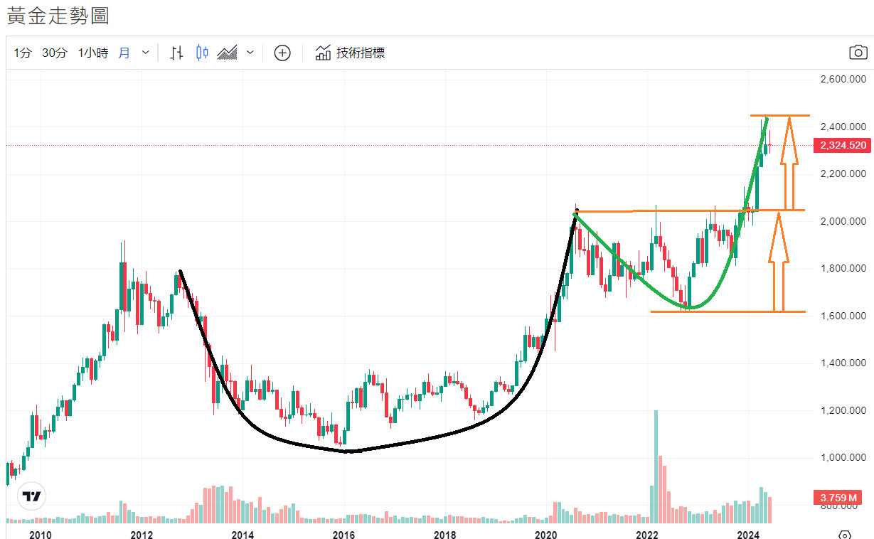 回覆 A06868:杯柄理論說會漲沒錯,黃金兩三個月前的大漲...