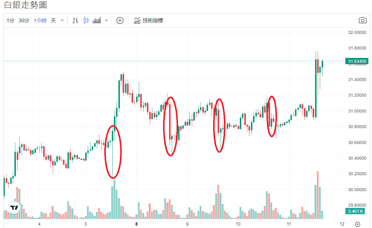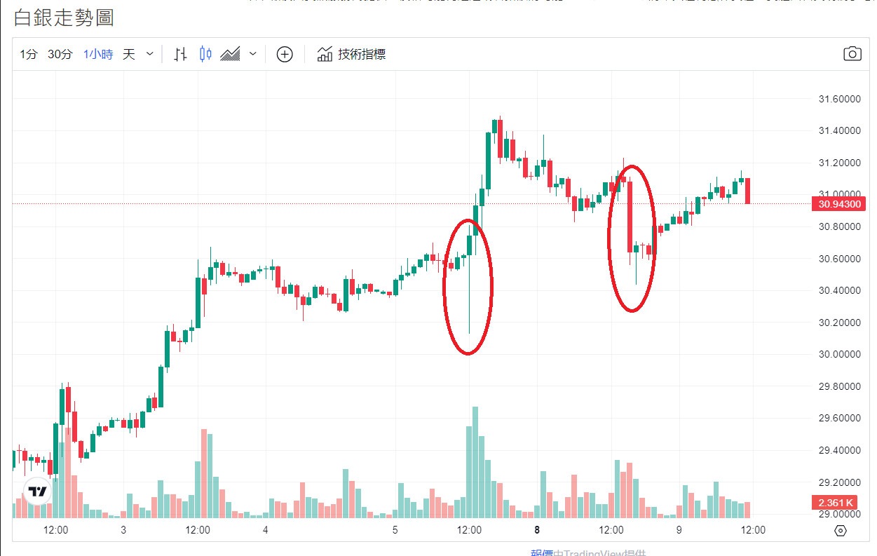 白銀漲勢凌厲勝黃金,跌勢也很猛,一旦確認趨勢即將向上,遇殺盤就是買點。
