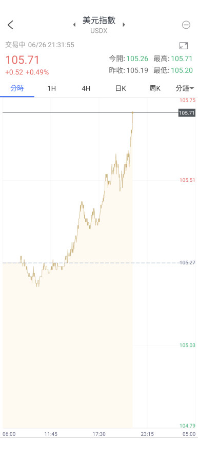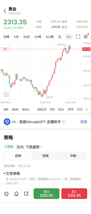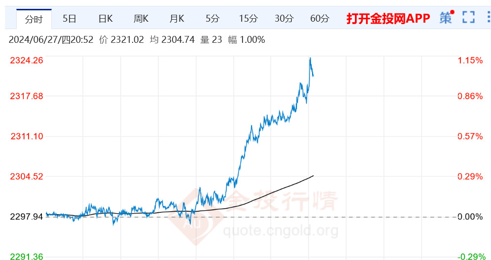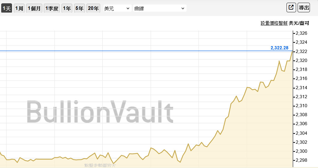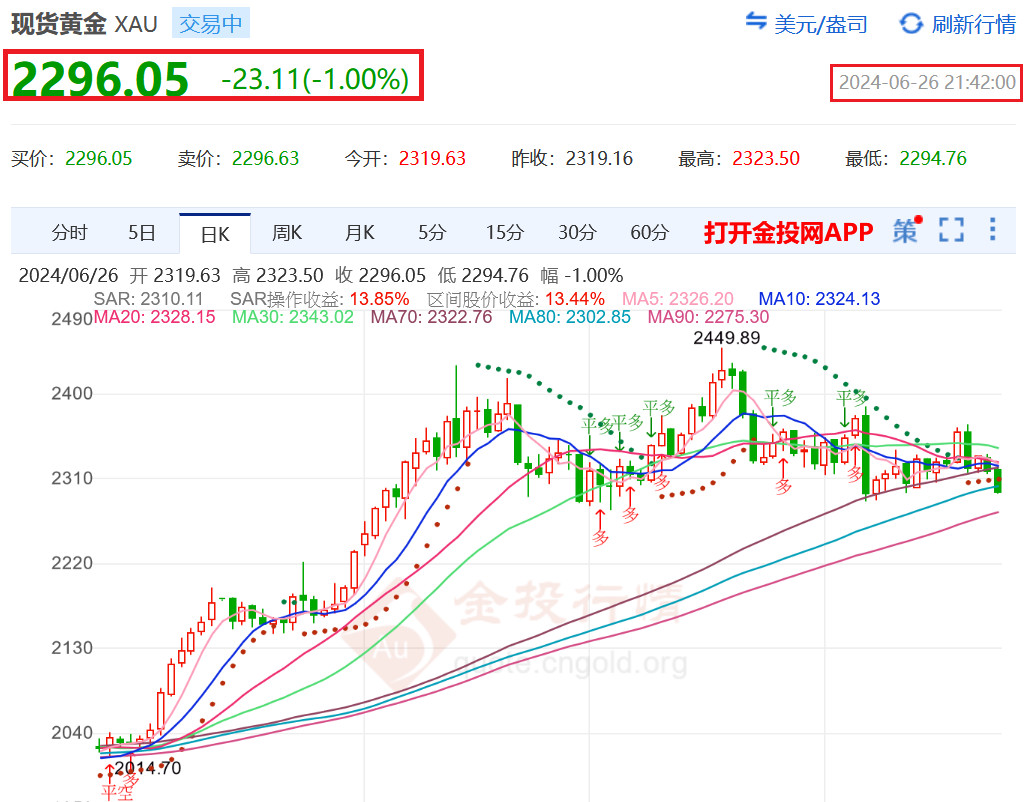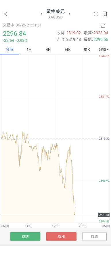 今夜6/26~21:42黃金現貨=2296美元/oz