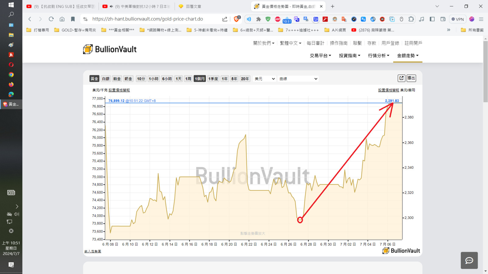 回覆 金贊:7/5周五收盤2391美元/盎司下周將繼...