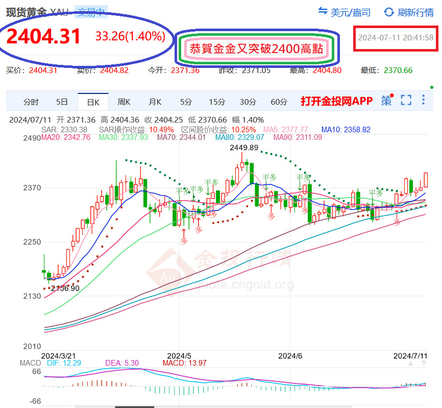 (2024.07.12金盤00:32)即時報價2413美元/oz
