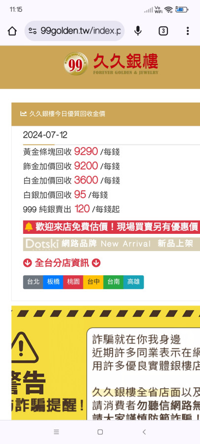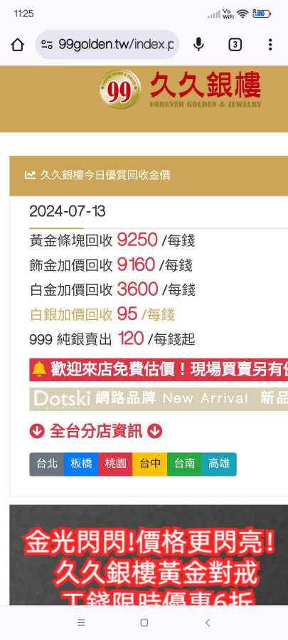 沒錯,繼續等待總有一天終究還是要面對,銀樓業者在怎麼閃總有一天破萬時還是得認,我們永和更誇張賣9810,買昨天是9010今天卻變8990,明明就是漲卻不敢面對,好險三年前的機緣下認識了高雄的年輕老闆,從此之後打死我都不會在永和那家店購買黃金,三年回算下來我在那家被當盤子傻傻的買,現在我只認定二家銀樓,北部板橋,南部高雄!