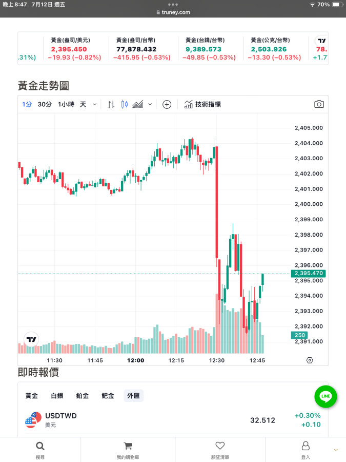 匯率跟金價加乘一下,效果差不多,以台幣計價的話沒跌。