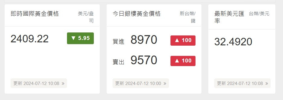 照昨天白天10~11點台灣銀樓的牌價來看,今明兩天應該就維持在禮拜五的價格。