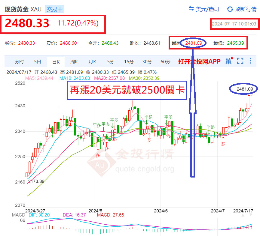 金金往2500美元~破關邁進