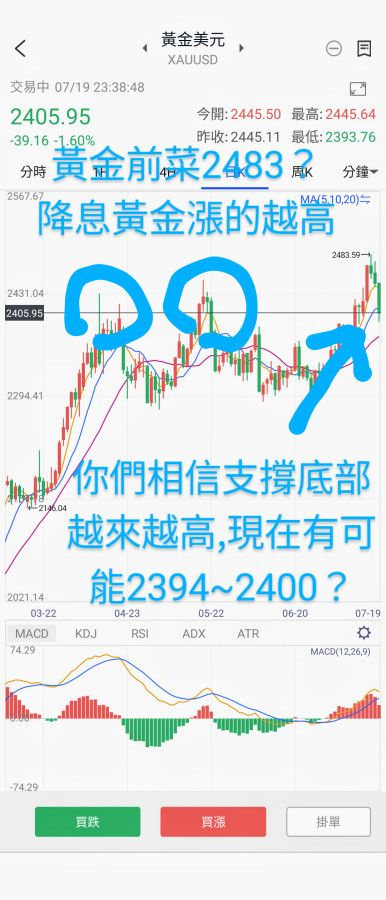 早上起來看到2400收盤,看來多頭有在支撐黃金👍.